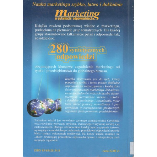 Marketing w pytaniach i odpowiedziach / Tadeusz Sztucki.. - Warszawa : "Placet", 2001. - 271 s. ; 21 cm.