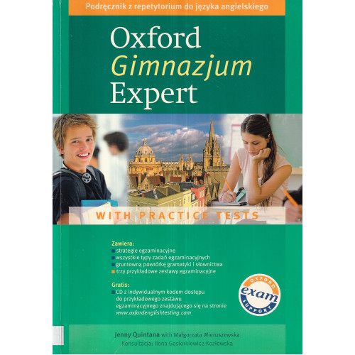 Oxford Gimnazjum Expert with practice test : podręcznik z repetytorium do języka angielskiego / Jenny Quintana with Małgorzata Wieruszewska ; konsultacja Ilona Gąsiorkiewicz-Kozłowska.. - Oxford : Oxford University Press, 2009. - 110, [1] s. : il. kolor. ; 30 cm.